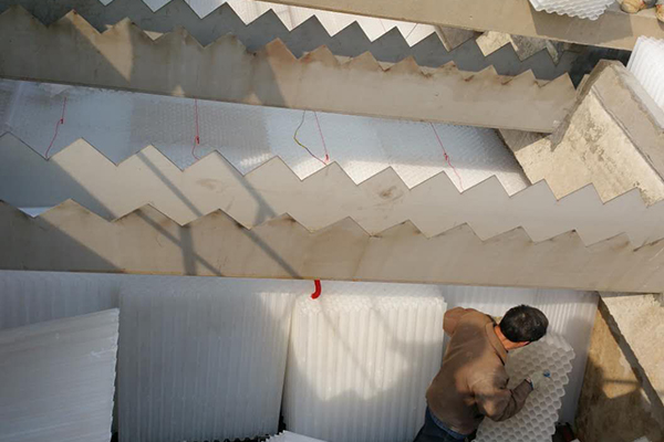 ? ? ? ? 二、蜂窩斜管分油法:蜂窩斜管分油法是將除油池在同一過(guò)水?dāng)嗝嫔戏殖扇舾尚「瘢髯栽叫。瑒t其分流效果越好,但格子太小易產(chǎn)生阻管現(xiàn)象,所以常用邊長(zhǎng)為35、50、80mm的正六邊形等規(guī)格斜管。廢水進(jìn)入廢水池時(shí),含油廢水緩慢上升時(shí),因?yàn)橛秃退拿芏扔胁町悾沟糜退饾u分離。綠源凈水的蜂窩斜管填料耐腐蝕,不沾油,光潔度好,常用材質(zhì)是聚酯玻璃鋼、乙丙共聚(PP)。